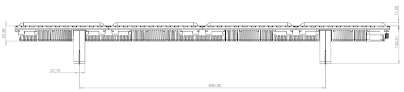 - Instalação sobreposta, com fixação em perfilados ou teto por meio de suportes tipo gancho G fabricados em nylon.