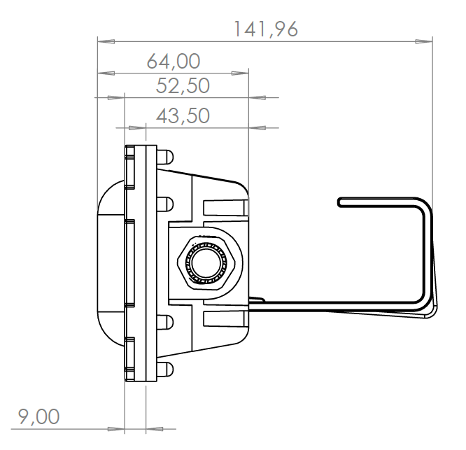 - Dimensões: 142 mm (A) x 320 mm (C) x 100 mm (L).